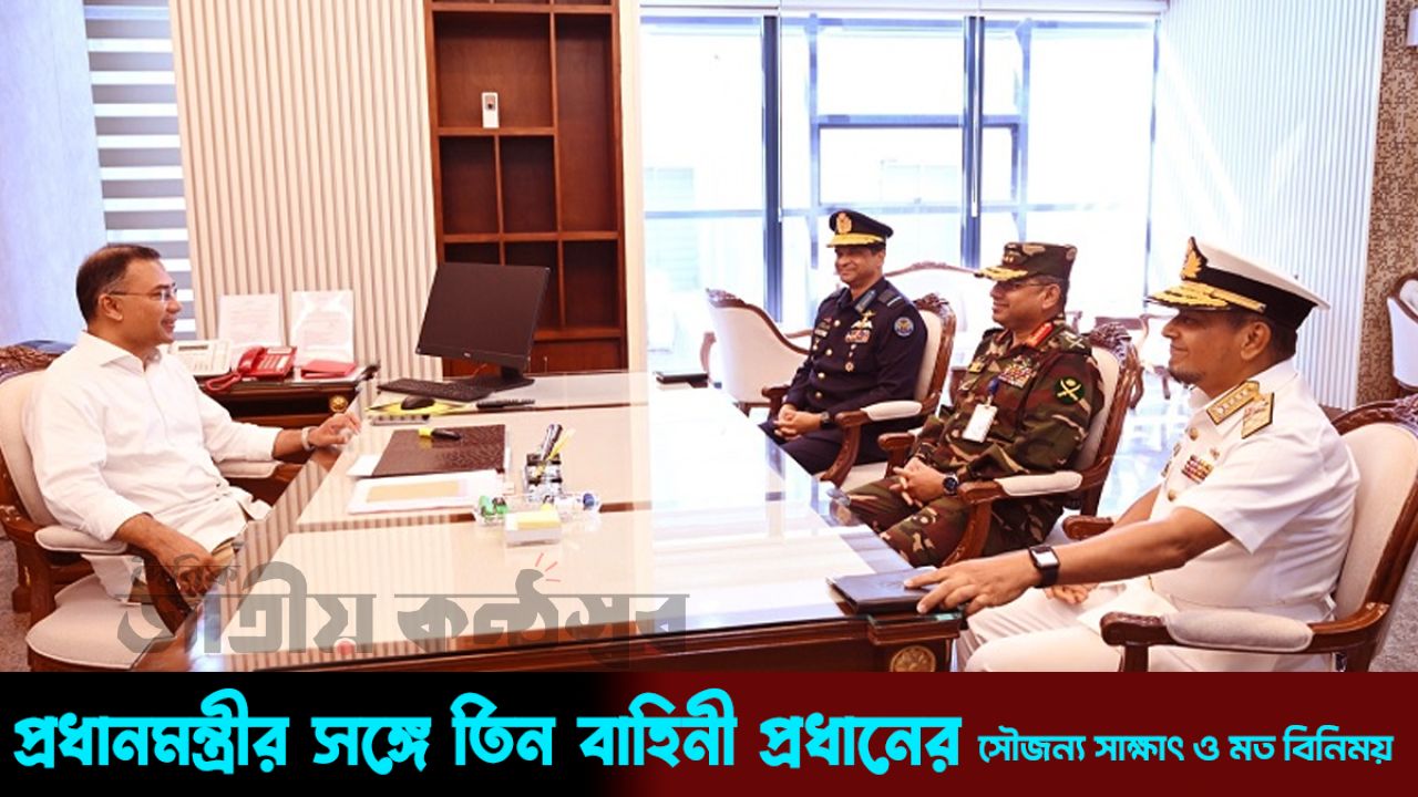 প্রধানমন্ত্রী কার্যালয়ে পৌঁছানোর পর সশস্ত্র বাহিনীর তিন প্রধানের সঙ্গে এক উচ্চপর্যায়ের বৈঠকে বসেন। বৈঠকে উপস্থিত ছিলেন: